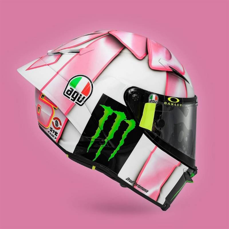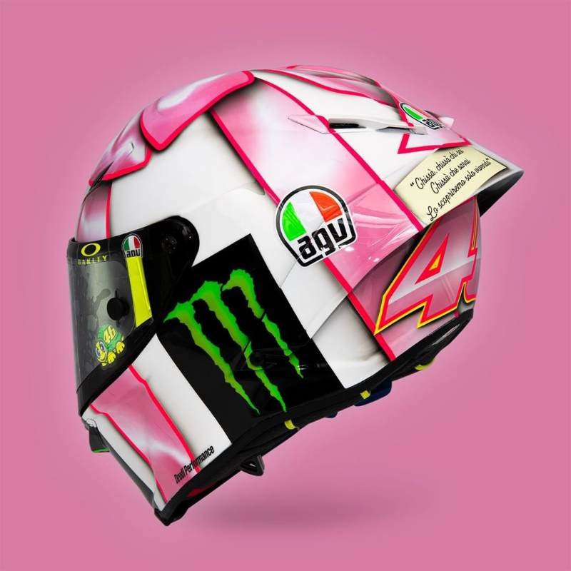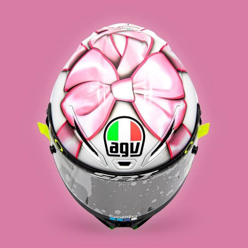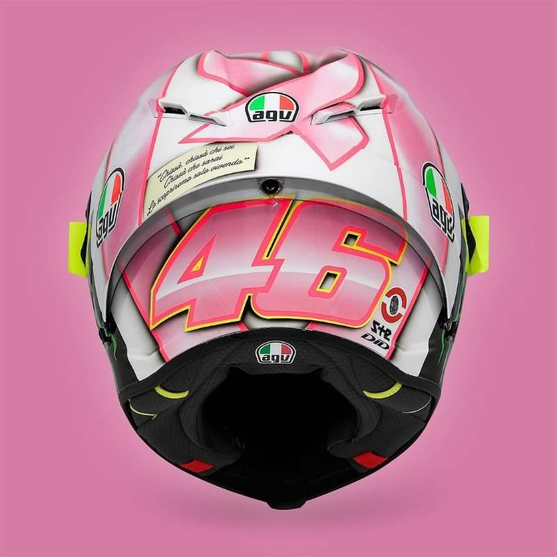 Pada pertandingan MotoGP San Marino nanti sore, sebuah helm spesial bernuansa pink akan digunakan oleh pembalap legendaris Valentino Rossi.