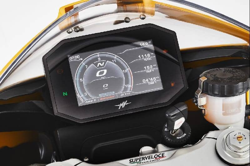 MV Agusta Superveloce 800 2021 masih dibekali dengan panel instrument layar TFT 5,5 inci panel instrument. Komponen itu pun masih kompatibel dengan aplikasi MV Ride. Fitur terbaru untuk sistem ini adalah, adanya joystick di setang kiri yang memberi kemudahan pada saat navigasi menu.